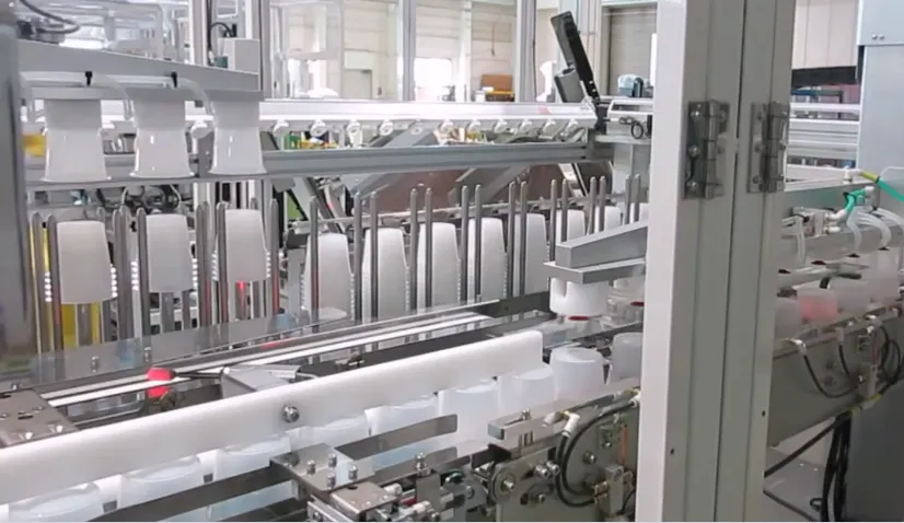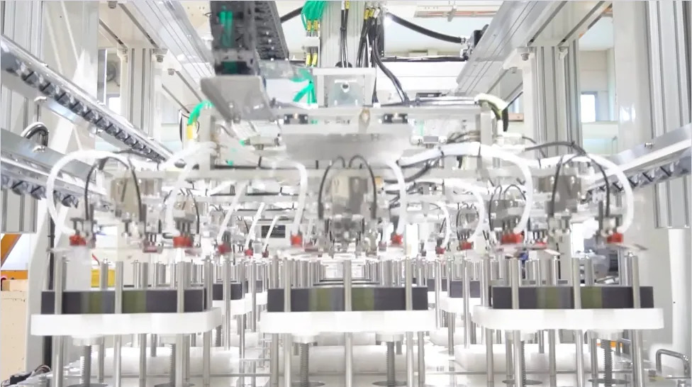 Once the appropriate number of good products have been collected for each box, they are held in place using suction or other means and arranged inside the box. They are handled carefully to prevent any scratches until the very end.