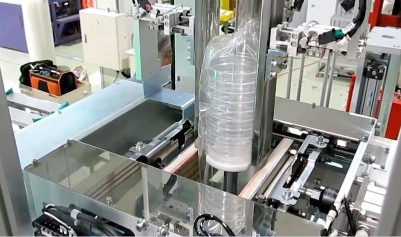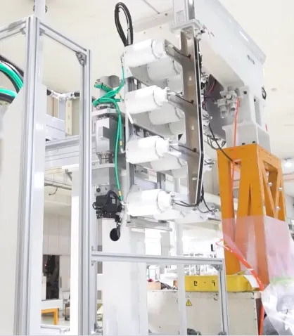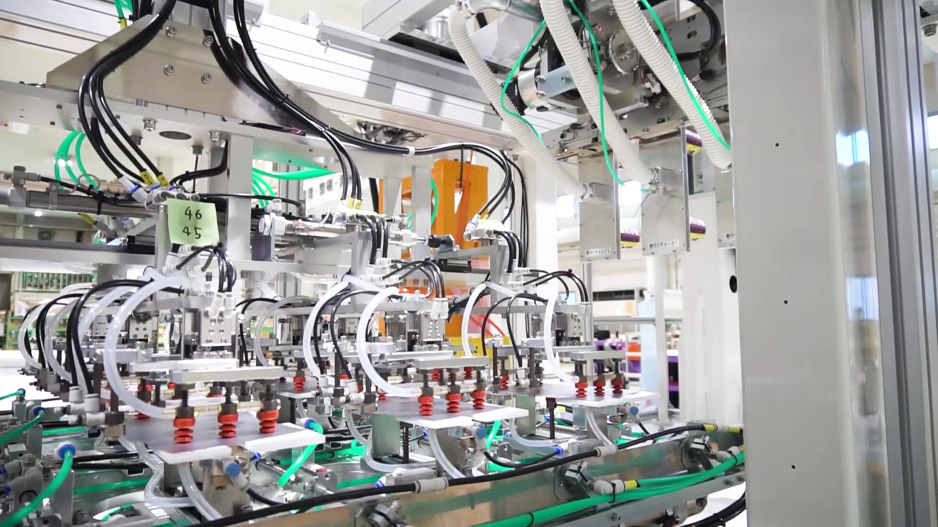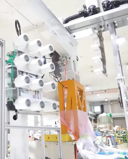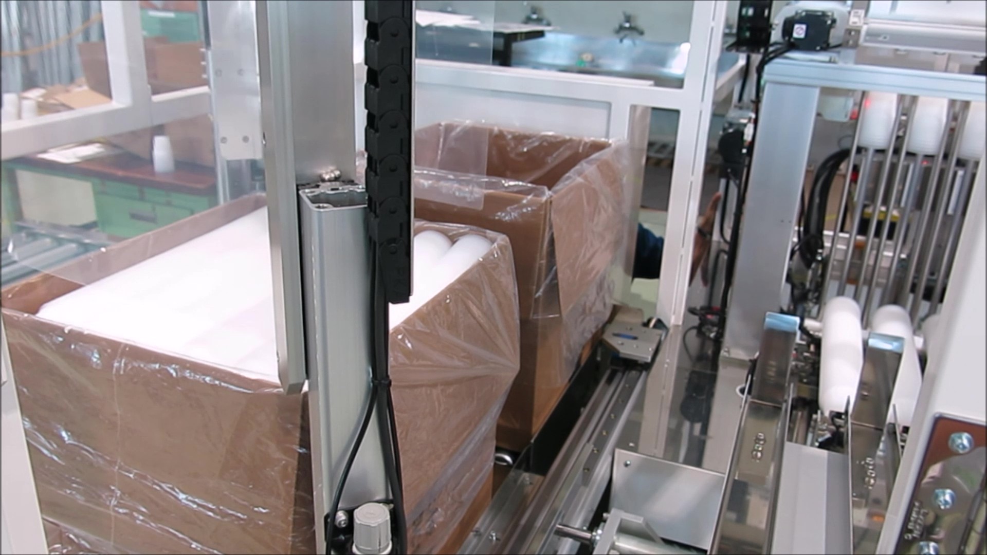 Once the appropriate number of good products have been collected for each box, they are held in place using suction or other means and arranged inside the box. They are handled carefully to prevent any scratches until the very end.